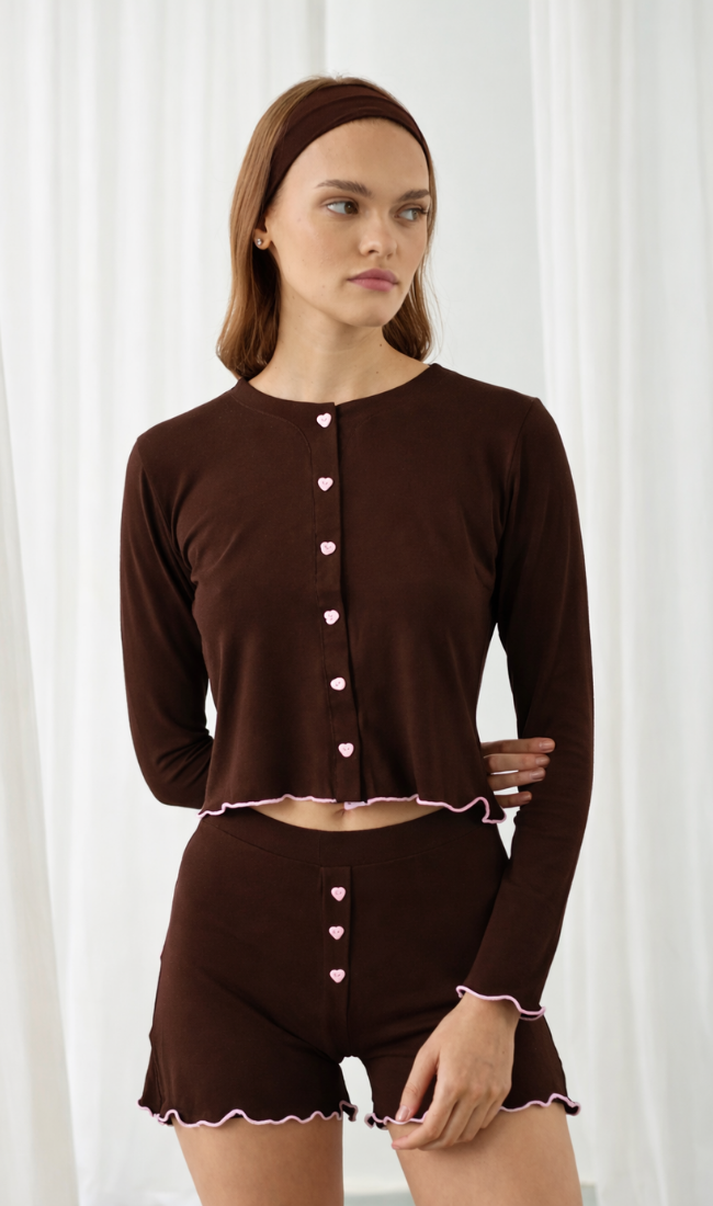 AMOUR HEART PYJAMAS BROWN PRE-ORDER