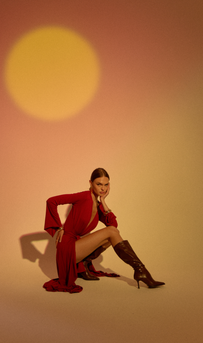 VELOUR DRESS BORDEAUX
