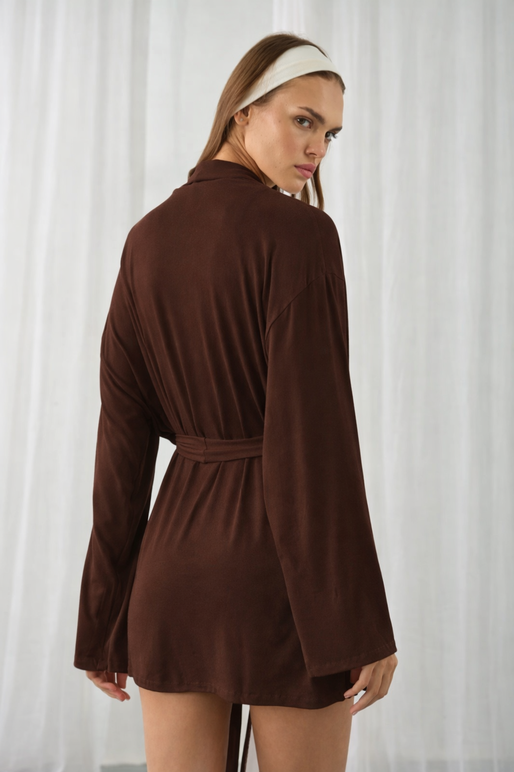 Chloe Kimono Dress with mini, slits on the sides and a soft fabric with tie detail.