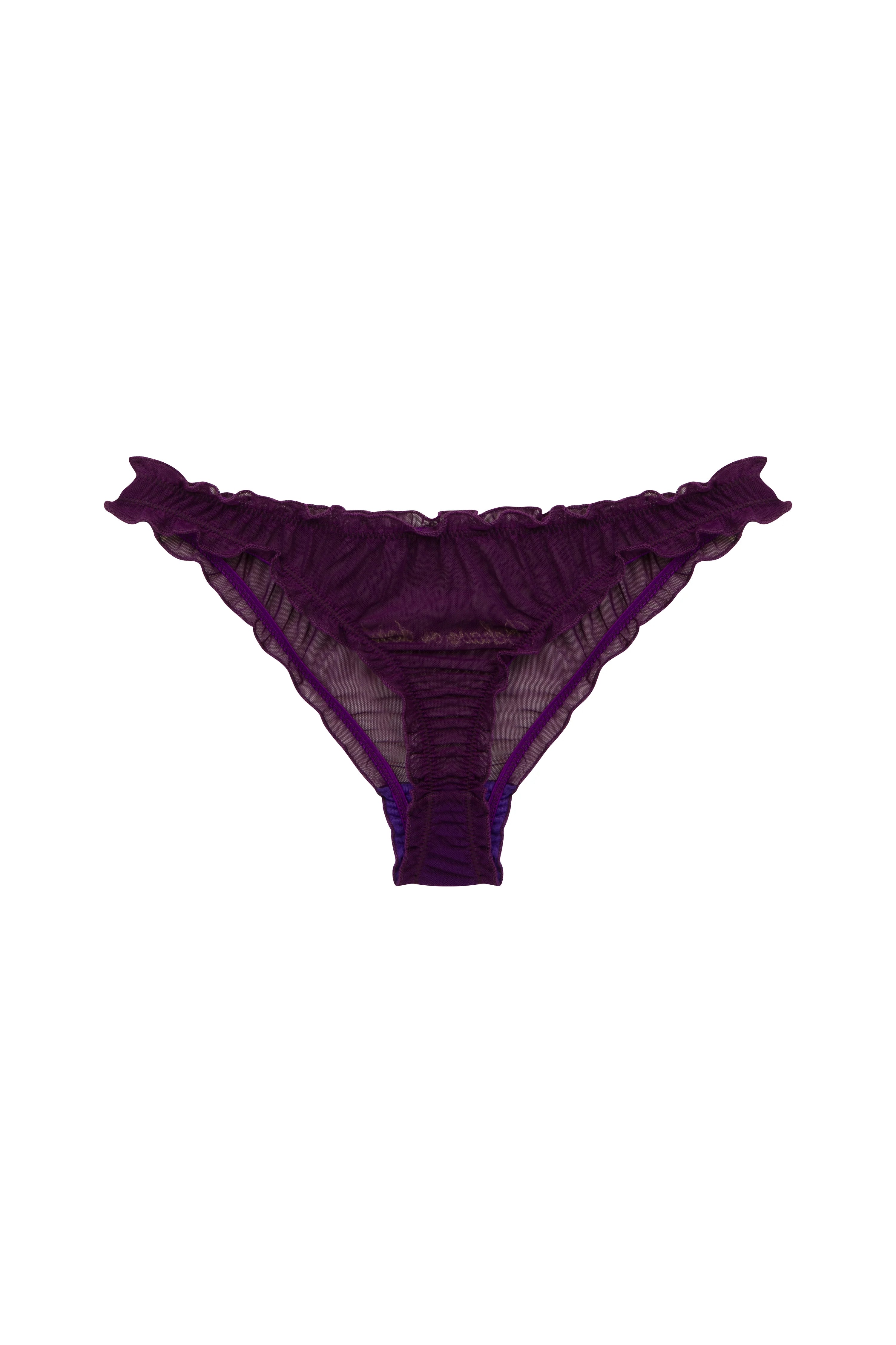 Introducing the "Let It Rain String" – a delicate addition to our collection that combines softness with a bold statement. This exquisite piece comes in a gentle plum, symbolizing the tender yet powerful essence of femininity. Adorned with yellow embroidered "Let It Rain" it speaks to the intuitive and sensual aspects of one's being. With its playful frills and the enticing transparency of tulle, it's designed to evoke a sense of allure and confidence. Perfect for those who embrace their sensuality with grace and strength, the "Let It Rain String" is a celebration of intimate knowledge and self-expression, making it an essential piece for a nuanced and deeply personal wardrobe.