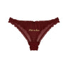 Introducing the "Hot In Here String" – a delicate addition to our collection that combines softness with a bold statement. This exquisite piece comes in a gentle burgundy, symbolizing the tender yet powerful essence of femininity. Adorned with yellow embroidered "Hot In Here" it speaks to the intuitive and sensual aspects of one's being. With its playful frills and the enticing transparency of tulle, it's designed to evoke a sense of allure and confidence. Perfect for those who embrace their sensuality with grace and strength, the "Hot In Here String" is a celebration of intimate knowledge and self-expression, making it an essential piece for a nuanced and deeply personal wardrobe.