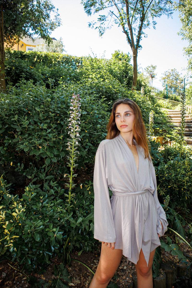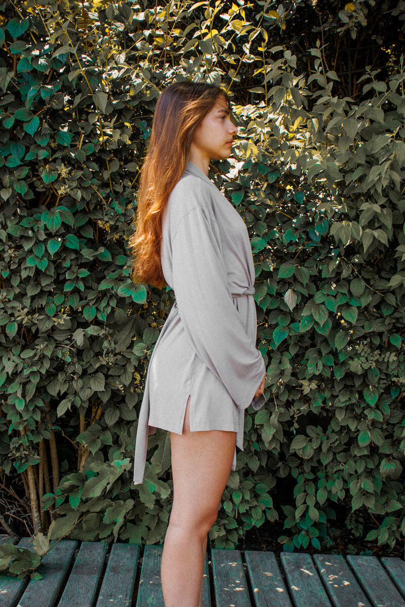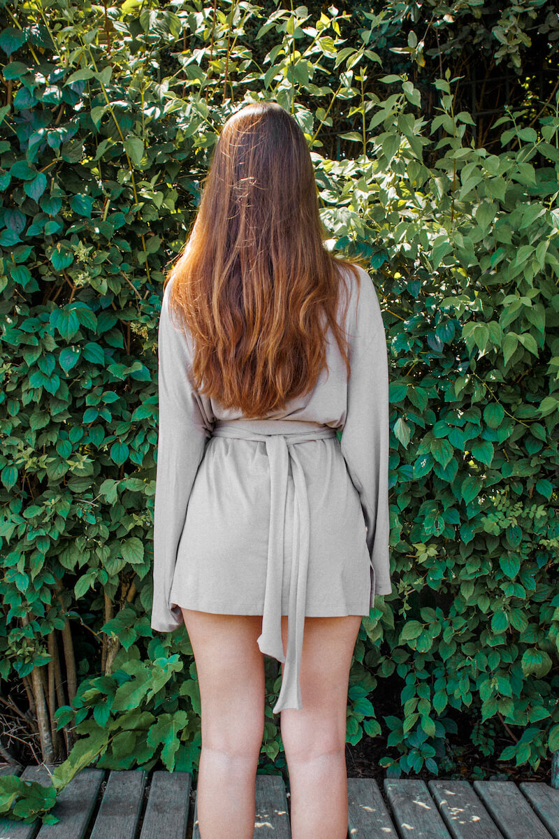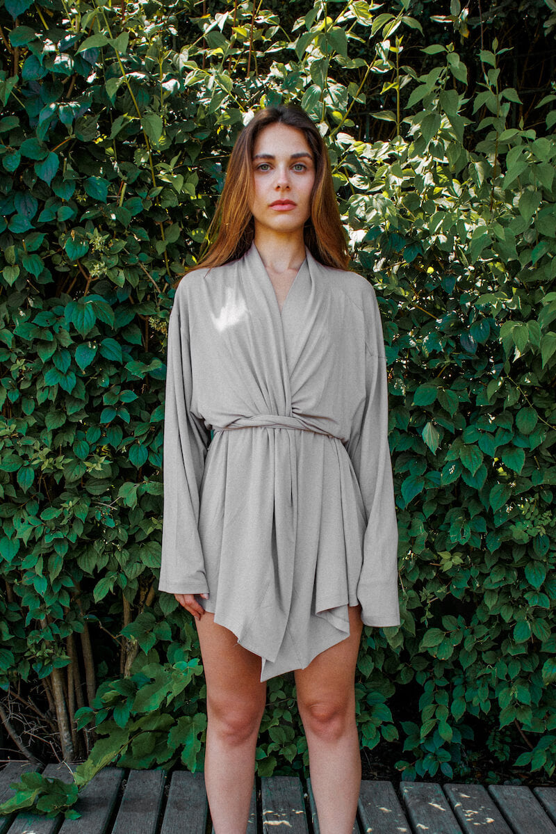 Yanları yırtmaçlı, yumuşak kumaştan, bağcık detaylı, mini Chloe Kimono Elbise.