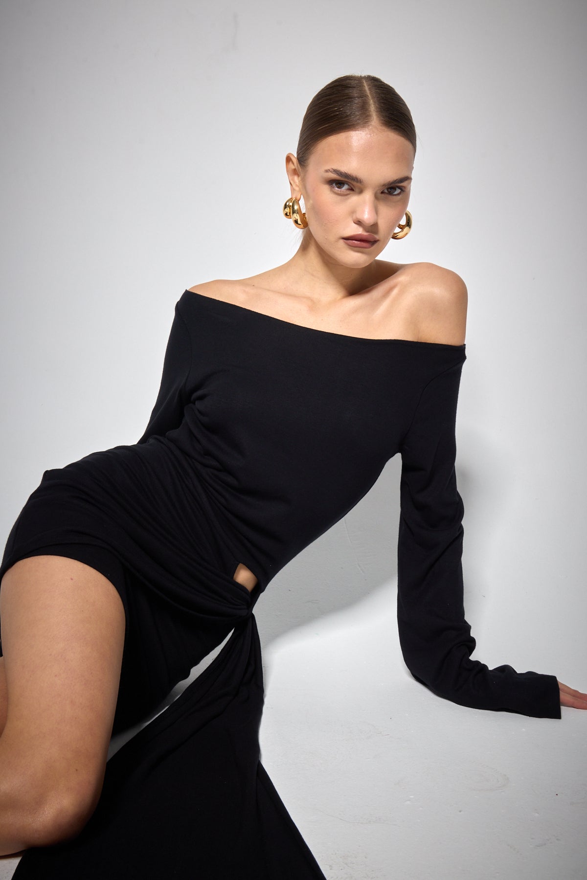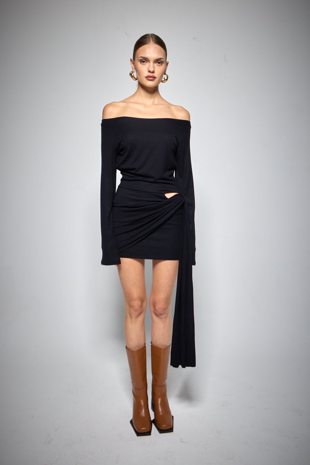 Liquide x Styling Issues koleksiyonuna sırt ve göğüs dekolte detaylı kısa elbise.
