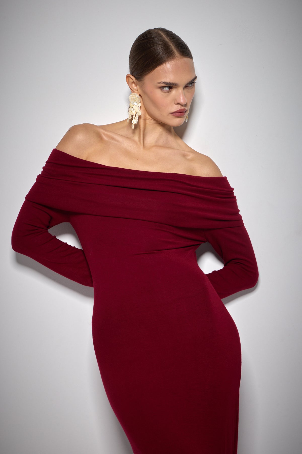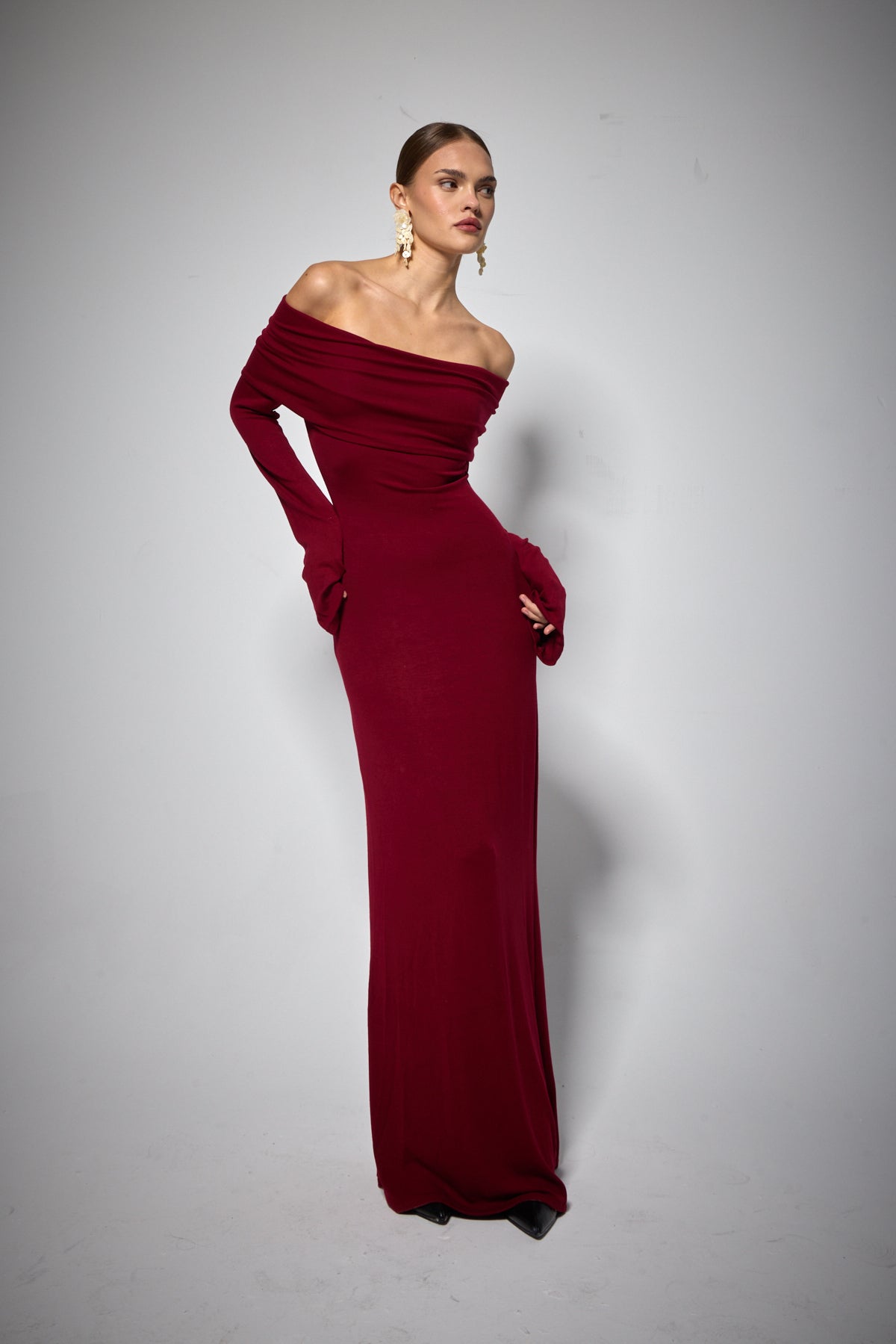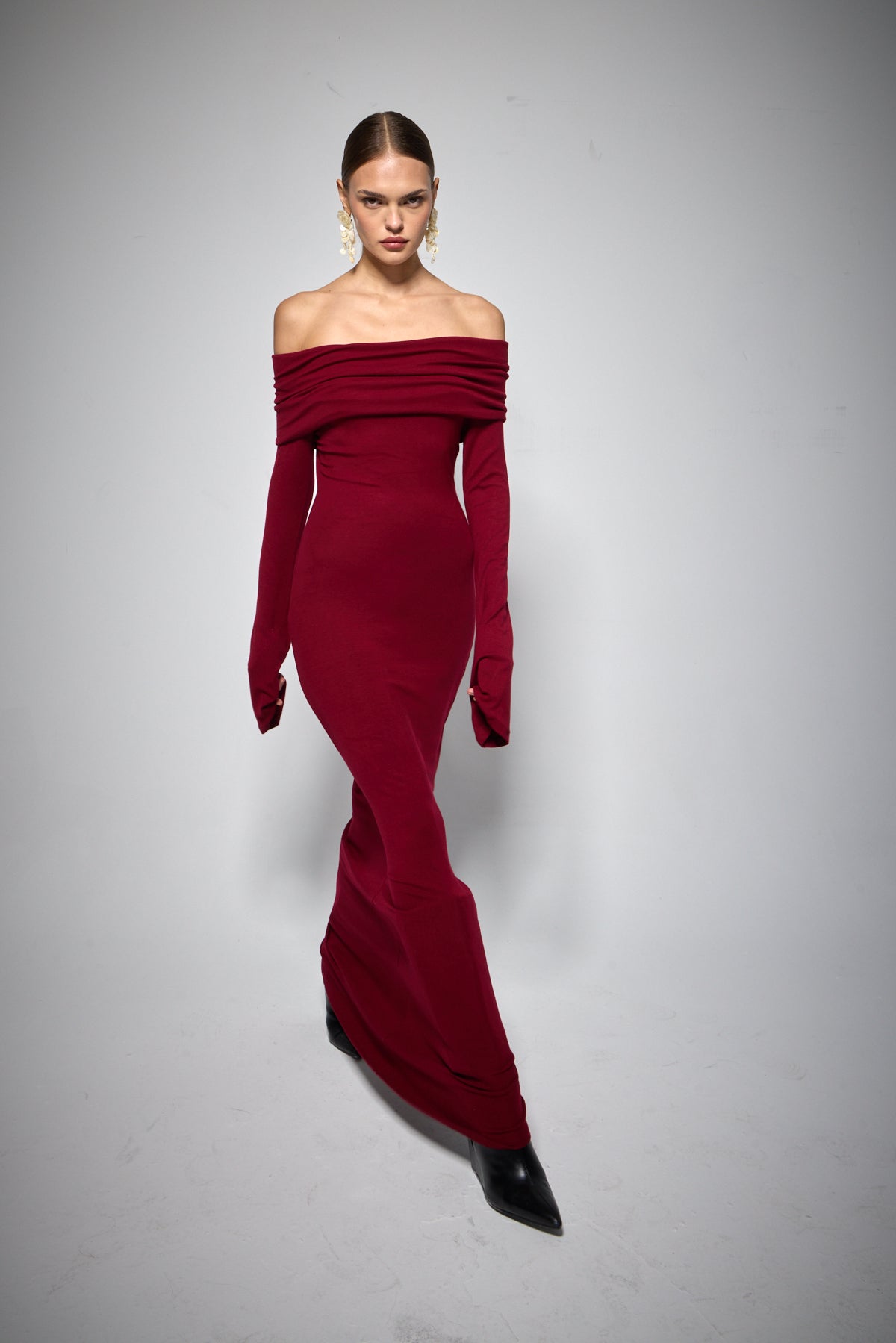 VELOUR ELBİSE BORDO