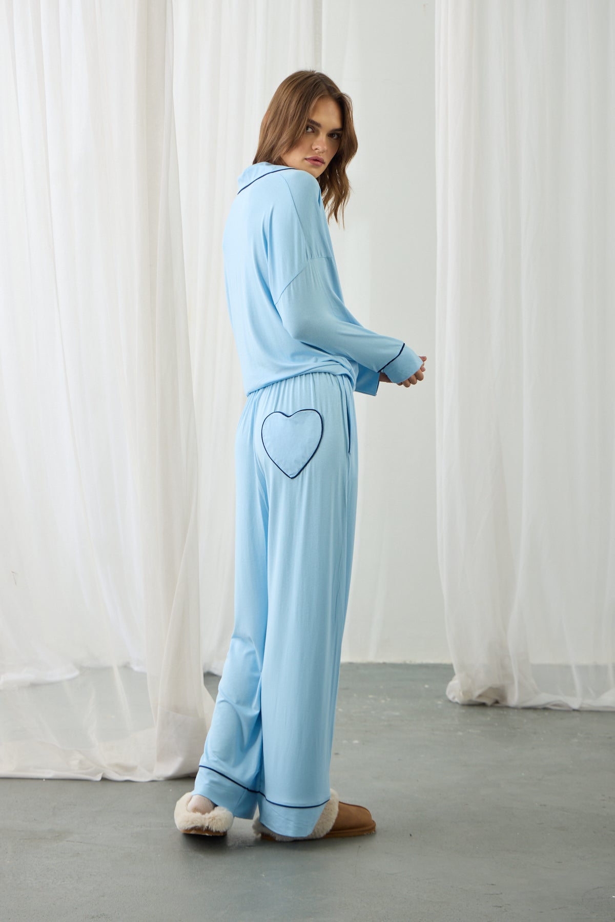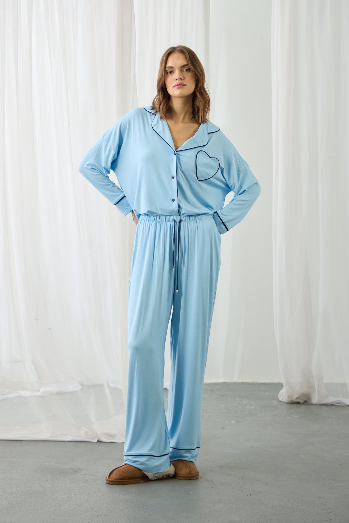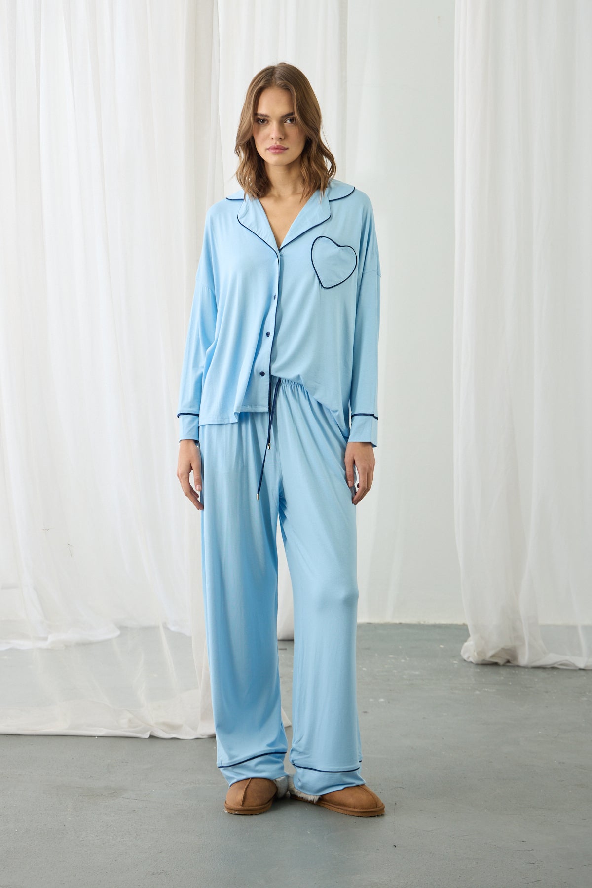 Kalpli cep ve düğme detaylı %100 pamuklu viskon kumaştan pijama.