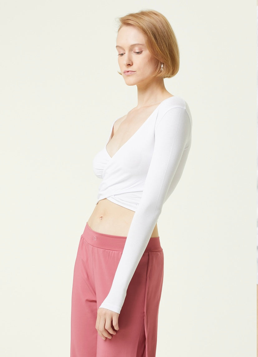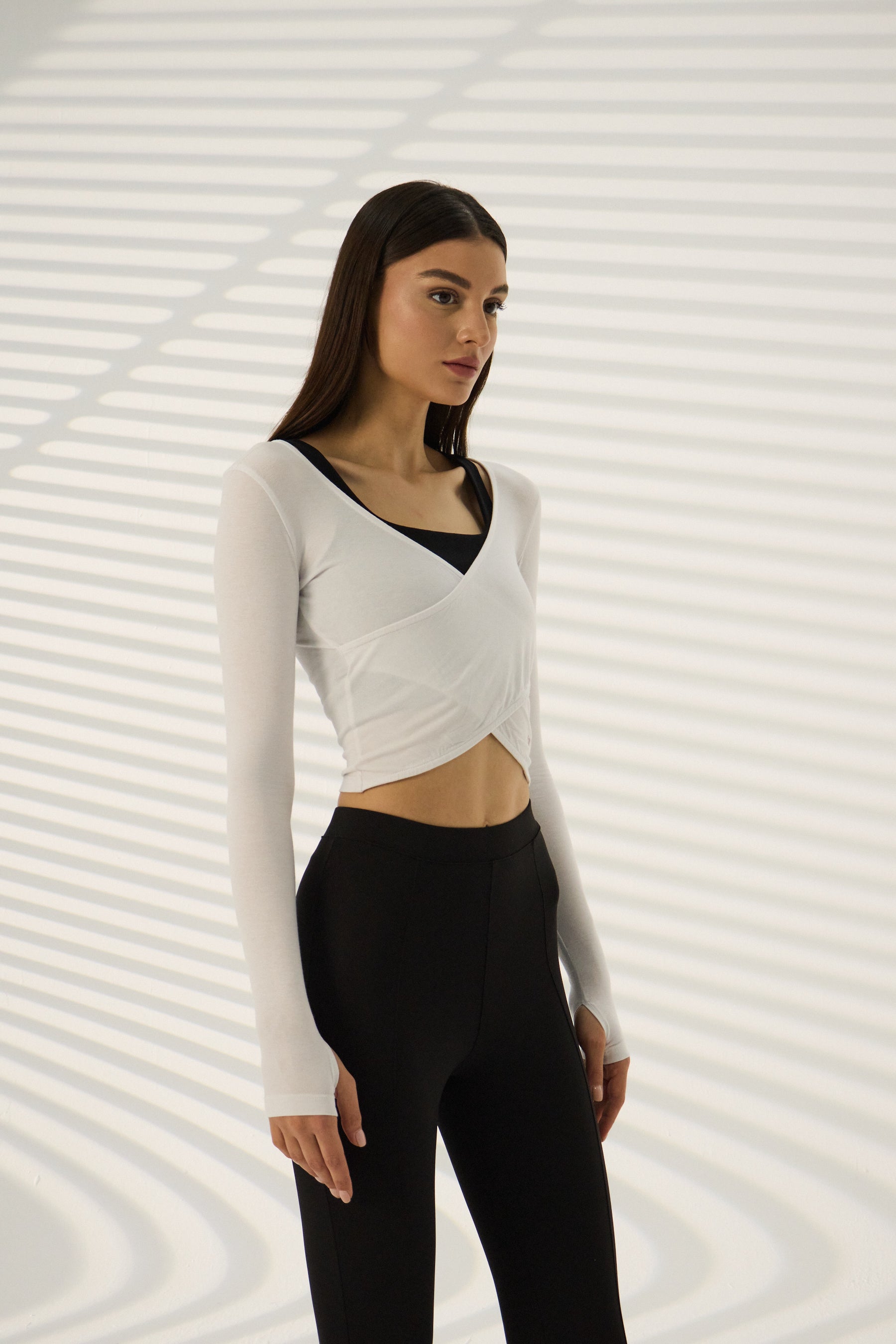 Bu parça Liquide tarafından esnek ve yumuşacık Turlu Viskon kumaştan üretilmiştir. Crop modelde, kruvaze kesim, parmak geçirme detaylı ve Liquide nakışlı Nada Sleeve.