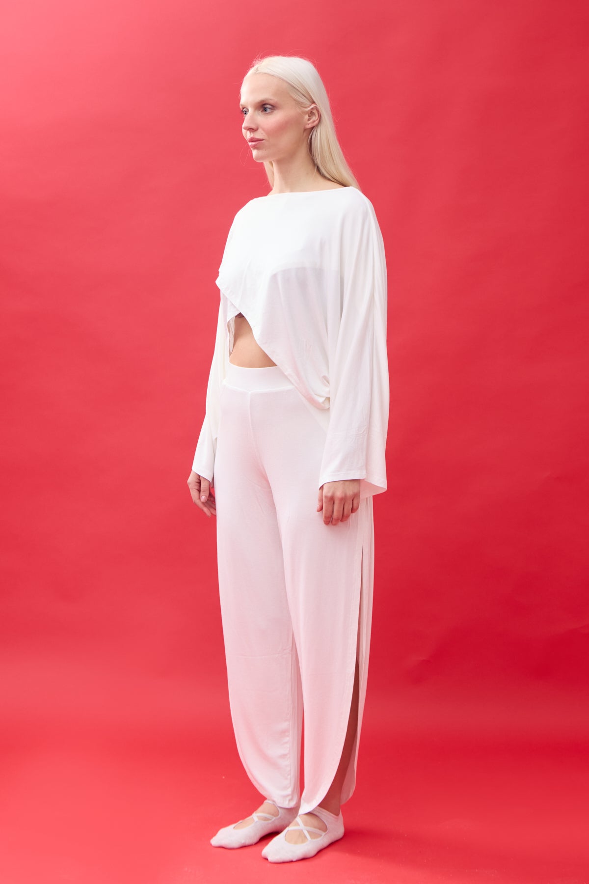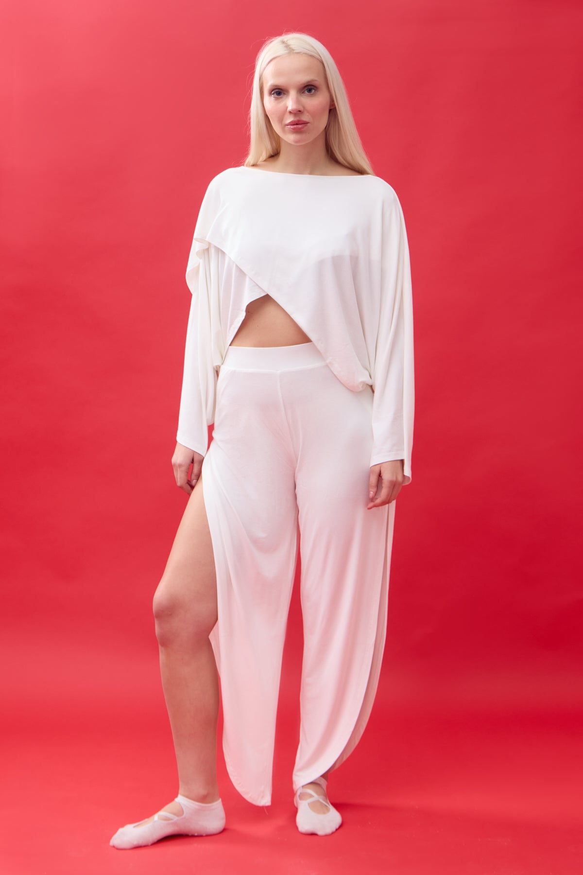 Yarasa kol üst; yoga, pilates gibi hafif sporlar ve günlük kullanıma uygun olarak %100 pamuklu viskon kumaştan üretilmiştir.