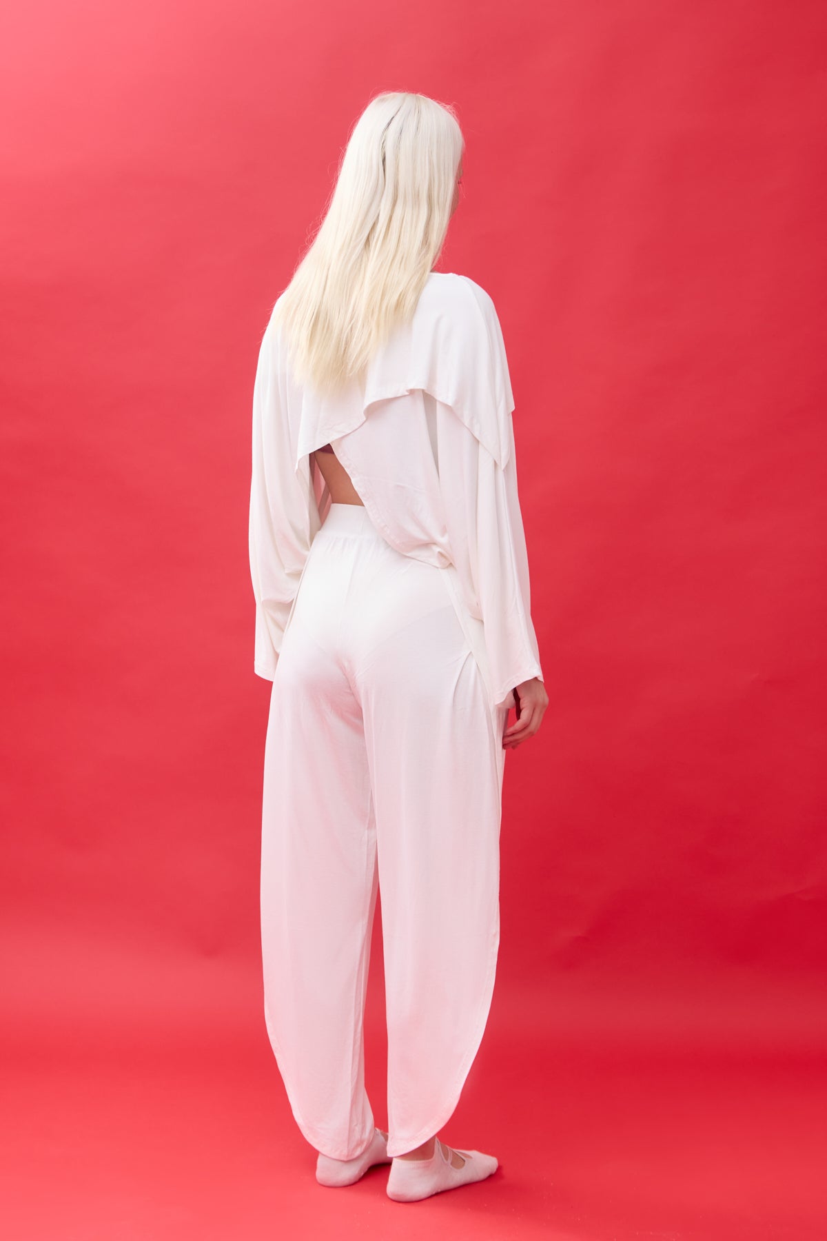 Yırtmaç detaylı, beli lastikli şalvar; yoga, pilates gibi hafif sporlar ve günlük kullanıma uygun olarak %100 pamuklu viskon kumaştan üretilmiştir.